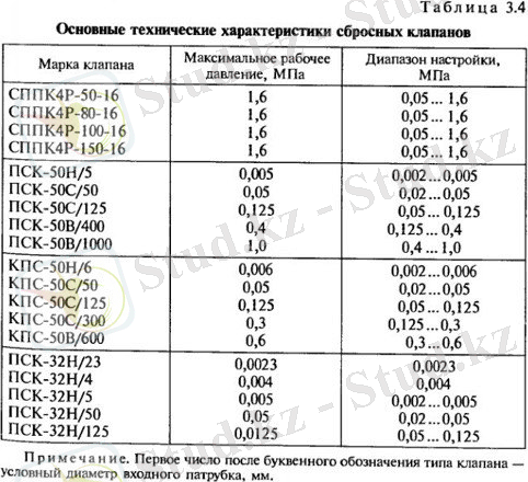 Сақтандырғыш ажыратқыш клапандары толық көтерілмелі және аз көтерілмелі болып бөлінеді. Олардың негізгі сипаттамалары 3. 4 кестеде келтірілген.