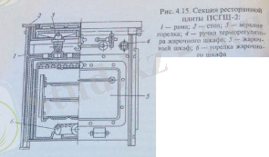 Ресторандық плита ПСГШ-2 (сур. 4. 15) шойыннан, төменгі бөлігі бүдір (қыздыру бетін ұлғайту үшін ), үстіңгі бөлігі тегіс (қыздырылатын ыдыс аяқ түбүмен тегіс жанасу үшін) .