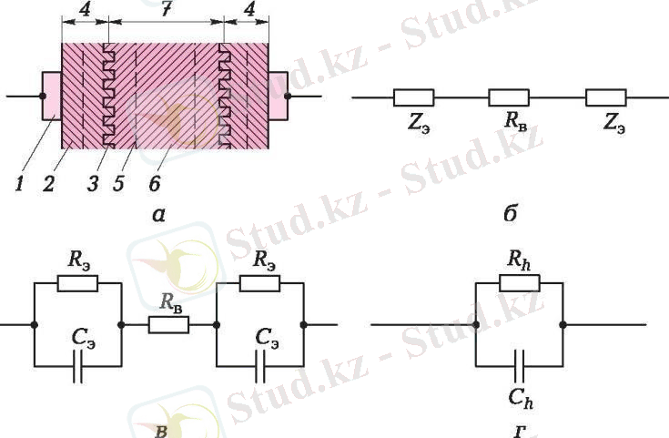 - терінің өсуқабаты; 4 - сыртқы тері қабаты (эпидермис және өсу қабаттары) ; 5 - ішкі тері қабаты (дермис) ; 6 - дененің тері астындағы тіндері; 7 - дененің ішкі тіндері, б, в - адам денесінің қарсыласу баламасы сұлбалары, r - оңайлатылған баламалы схема