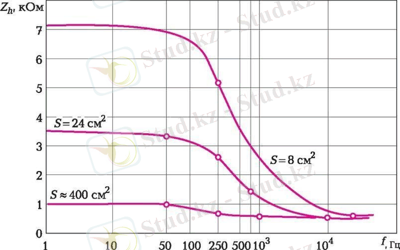Ағымдағы ток жиілігі артуына қарай, 𝑧 ℎ азаяды, өйткені сыйымдылық қарқындылығы төмендейді.