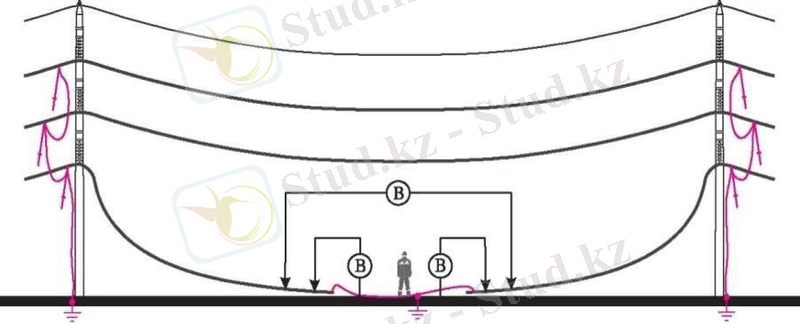 ажыратылған ЖВ әуе желісінің сымдары (найзағайдан қорғайтын кабельдер) ;