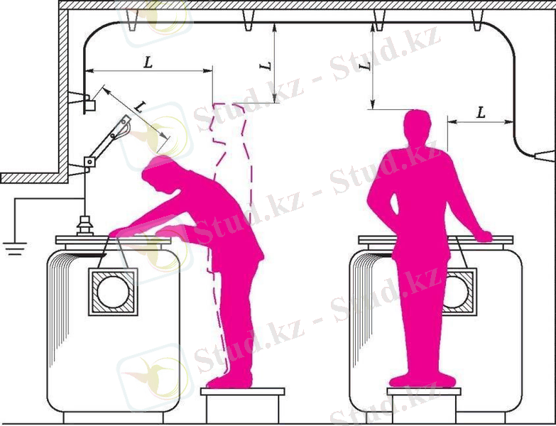 Сурет. 18. 1. Қолданыстағы электрқондырғыларында жұмыс істейтін адамнан, кернеуі 1000 В жоғары кернеулі бөліктерге дейін ең аз рұқсат етілген қашықтықты анықтау