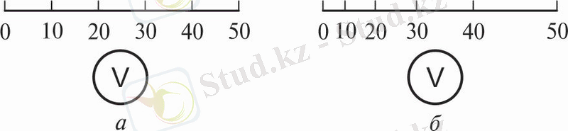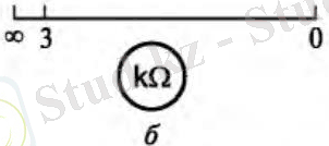 - , б суретте көрсетілген вольтметрдің шкаласы үшін 3-тен 10 В-қа дейінгі аймақ жұмыс аймағы болып табылады.