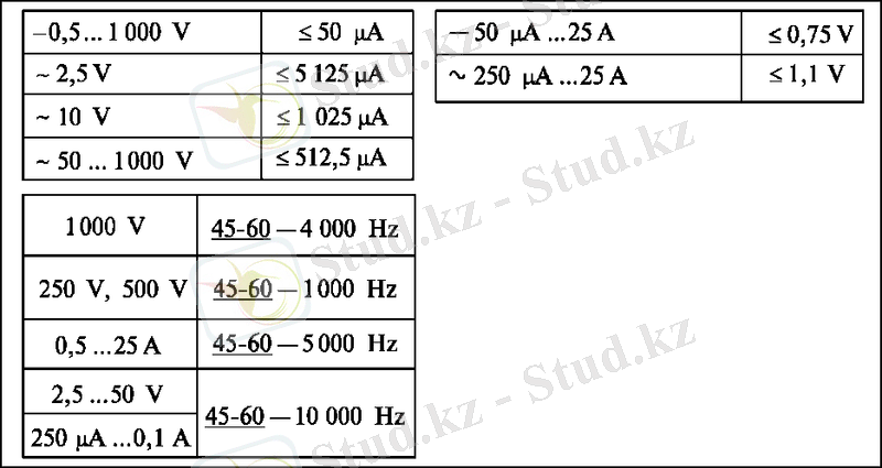 Мысал. 4. 4 мысалда таңдалған өлшеу шегінде Ц4353 мультиметрінің шығыстық кедергісін анықтау талап етіледі.Шешімі. Өлшеу қателігін (2. 5) формула бойынша есептейміз.