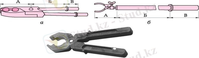 Өлшеу қысқыштары ең аз ұзындығы (сурет 21. 5, г) 380 мм, тұтқалары 130 мм.