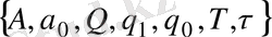 - А алфавитінің бос сөзі, Q -Тьюринг машинасының жағдайын білдіретін шекті жиынның элементі, q