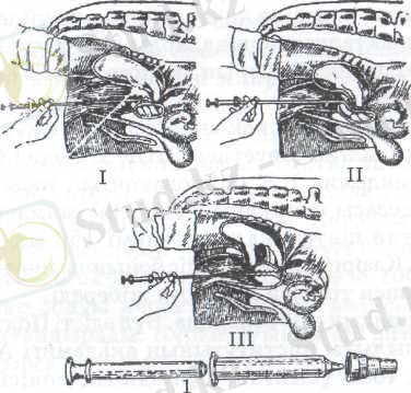 Осылай қояндарды және қынабы тар тұсақ пен тайыншаны ұрықтандырады. Несеп шығатын жолға түспеу үшін аспапты қынаптың жоғарғы eзуiнен (бұрышынан), тоқтыларға 15-18 см, ал тайыншаларға 30-35 см тереңдікте енгізеді: