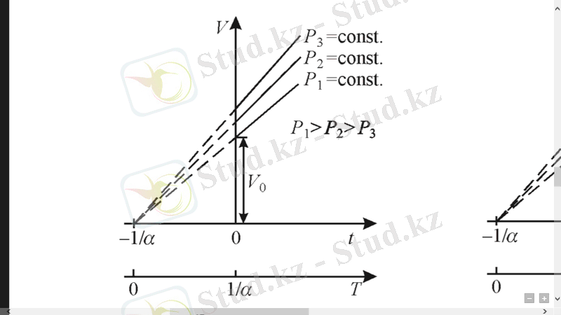 мұндағы: -газдың - тағы көлемі, - газдың көлемдік ұлғаюының термиялық коэффициенті. Тұрақты қысымда газ көлемі мен температураның тәуелділігі графикте түзу сызықпен көрсетіледі. Қысымның әрбір мәніне сәйкес келетін түзу сызық изобара деп аталады (1. 2 сурет) .