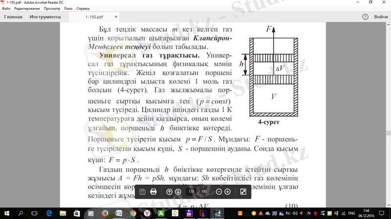 Егер де (1. 10) және (1. 13) теңдеулерді салыстырсақ, онда универсал газ тұрақтысы істелген жұмысқа тең болады: