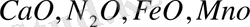 Болат балқыту процестері шлактарының әр түрлі варианттарының минералогиялық анализі шлактарда төменде көрсетілген қосылыстар ең жиі кездесетінің көрсетті: