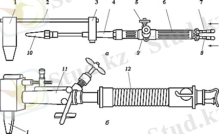 4 - қыздырғыш; 5, 9 - крандар; 6 - тұтқа; 7, 8 - жалғастықтар; 10 - сопло; 11 - бензин қыздырғышы; 12 - резервуар тұтқасы