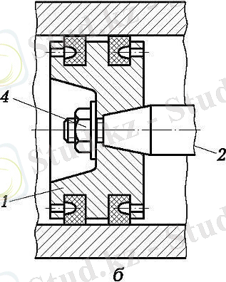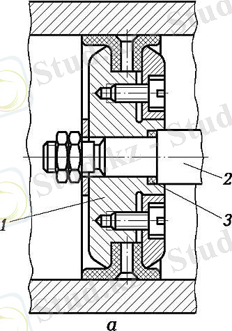 Поршеньді құрастыру (8. 9 сурет) поршеннің 1 жəне штоктың 2 геометриялық өлшемдер мен қондырмалы орындардың пішінін сызбаның талаптарына сəйкестігін тексеріп, содан соң штокта белдеменің қасында поршеннің штокқа жабыспауын қамтамасыз ететін мыс сақина 3 орнатады да поршеньді штоктың цилиндрлік мойнына престейді (8. 9 сурет, а) .