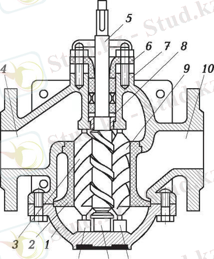 Осы сорғылардағы жұмыс органы болып бұрандалы сызықты қалыптастыратын бұрандалары бар ротор 5 табылады (бірнеше ротор болуы мүмкін) . 8. 7 суретінде көрсетілген сорғының үш роторы бар, олардың біреуі (5) басыңқы, ал екіншісі (3 жəне 9) жетектеген. Бұрандалы роторлар циклоид профилі бар екі жолақты болып табылады. Ротордың соңғы беттерінде сору камералары 4 жəне айдау 10 камералары бар. Әр ротордың цилиндр бөлігі сорғы тұрқысымен 7 тығыз түрде қатыстырылған.
