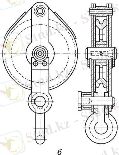 Жүктің көлденең бағытта қозғалысының қажеттілігі туындаған жағдайда аспаны монорельстік арбадағы траверске 6 ілмекпен (сурет 9. 4) асады.