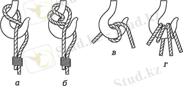 Массасы кішкентай жүктерді көтеру үшін, арқандарды ілгекке бір рет орап салады (9. 11, а сурет) немесе екіреттік ілгіш түйін (9. 11, б сурет) істеп, бекітеді.