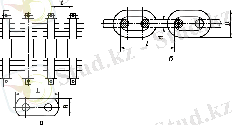 - -сурет . қатпарлы (а) жəнедомалақ бөлікті (б) жүк шынжыры: В - шынжыр ені; L - қатпа ұзындығы; t - аралығы