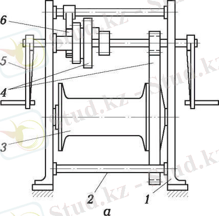 Қол жетекті жүкарба (9. 3 суреті) жетеккүштермен 2 біріктірілген табаннан тұрады. Тұтқа 5 айналымы тістік берілім 4 арқылы барабанға 3 беріледі. Көтерілген жүк еркін түсуден тіреуіш механизмының 6 көмегімен ұстатылады.