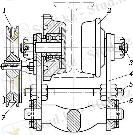 5 - түтік; 6 - траверса; 7 - жетекті доңғалақ