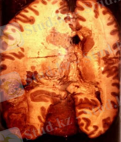 Ми инфаркты. ми қан тамырларының окклюзиясына, тромбо-зына, эмболиясына байланысты дамиды. Ми инфарктының даму-ыңда ми қан тамырлары арасындағы коллатералдық жолдардың маңызы зор, себебі ми қан тамырлары бір-бірімен өте тығыз бай-ланысқан. Вимизий шеңбері осы жолдарды байланыстырып түра-ды. Мидағы инфаркт негізінен мидың орта артериясының бассейнінде дамиды. Ми артерияларының окклюзиясы (тарылып қалуы, тығындалуы) негізінен атеросклероздық өзгерістерге байланысты. Атеросклероздық өзгерістер ми артерияларыңда ғана емес, омыртқа артериясында (a. vertebralis) және ішкі үйқы артериясын-да да дамуы мүмкін. Пайда болған атеросклероздық табақшалар артериялар саңылауын тарылтып немесе бүтіндей бітеп тастайды.