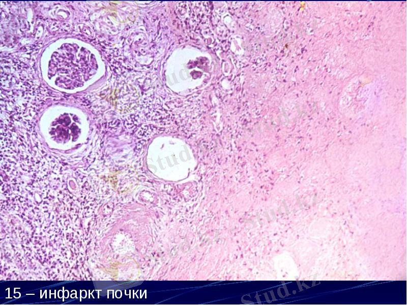 2 сурет. Бүйректегі ақ инфаркт микроскопиялық көрінісі