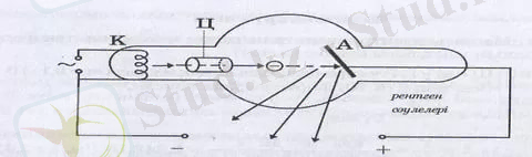 Рентген сәулесі -дегеніміз анодтың көлбеу бетінен шағылысып сынған электрондар емес, ол электрондардың жоғары жылдамдықппен келіп анодтың вольфрамды айнасының бетіне ұрылып, бірден тежелуінен пайда болған электромагнитті тербеліс.