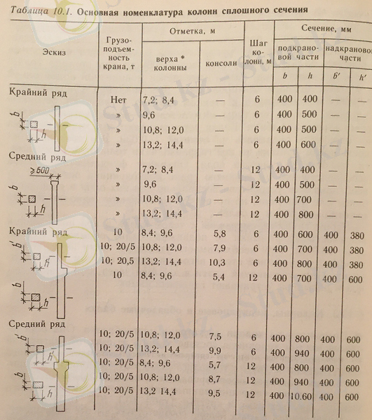 Ұстындардың өлшемдерін ғимараттың биіктігіне сәйкес алынады, жүк көтергіштігіне байланысты ГОСТ 25628-90 стандартымен аламыз. Ғимараттың биіктігі 15 м сәйкесінше өлшемдері келесі кестеде көрсетілген.