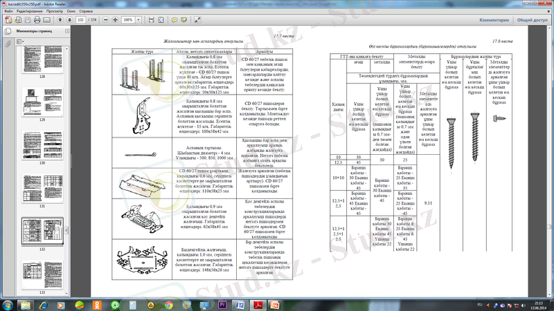 қалыңдығына ие болатын металды қаңқаға жəне ағаш қаңқаға бекіту үшін екі рет кіретін тең