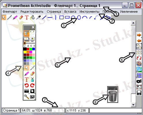 Арнайы ақ түсті интерактивті тақта қолдануға жасалған Activstudio интерфейсі (3-сурет) .