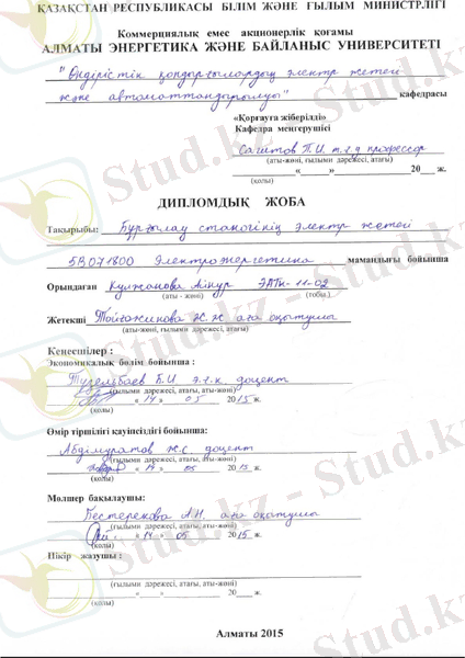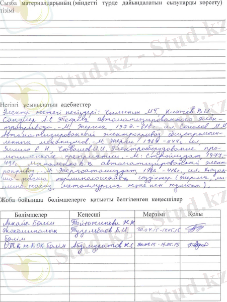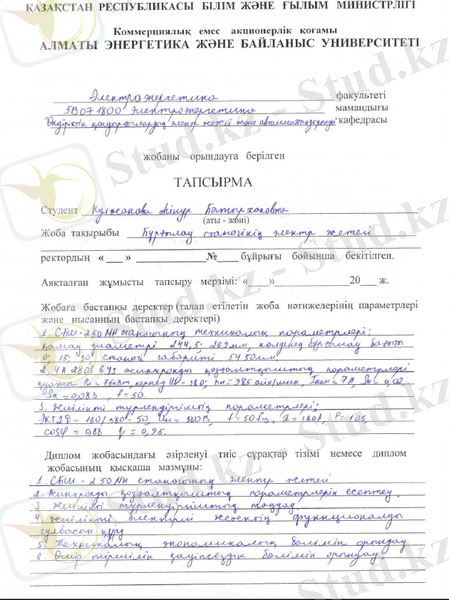 Дипломдық жоба "Бұрғылау станогінің электр жетегінің " тақырыбына
