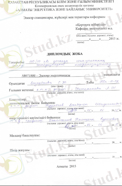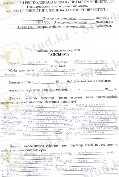 substations 110/10 kV Shalkar distance. In this graduation project is invited to