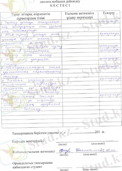 Бұл дипломдық жұмыстың негізгі мақсаты Шалқар дистанциясының 110/10