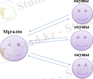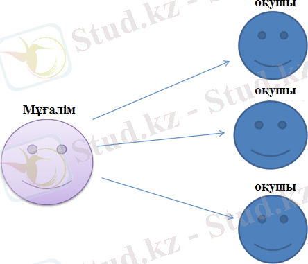 Пассивті әдіс (сурет. 1. 1) - бұл оқушылар мен мұғалiмнің қарым қатынасы, осындағы ұстаз негізгі қатысушы кейiпкері және сабақ барысының бағдарлаушысы болады, ал оқушылар болса енжар тыңдаушылардың рөлдерiнде, мұғалiмнiң қол астындағы нұсқаулары ретінде болады.