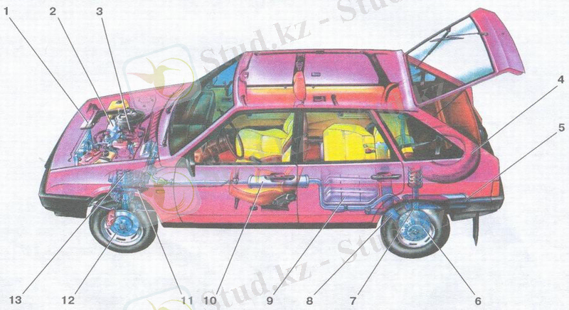 Сурет 3. 1 ВАЗ - 2109 автокөлік бөлшектерінің орналасуы