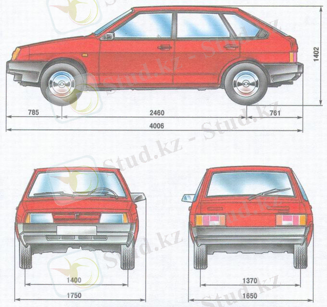 ВАЗ-2109 автокөлігінің габариттік өлшемі сурет 3. 2-де берілген. Автокөліктің техникалық мінездемесі кесте 3. 1 қысқа түрінде көрсетіледі.