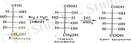 Бұл реакция, глюкозаның көміртектік қаңқасында ешқандай тармақталу жоқ (көміртектік нормаль тізбек) дегенді айтады, 2) ұяң (жұмсақ) жағдайларда тотықса глюкон қышқылын түзеді