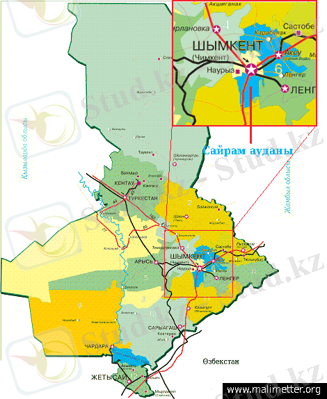 Сурет 1. Сайрам ауданының орналасуы
