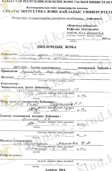 Дипломдық жобаның экономикалық бөлімінде қосалқы станса