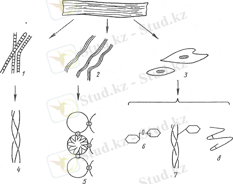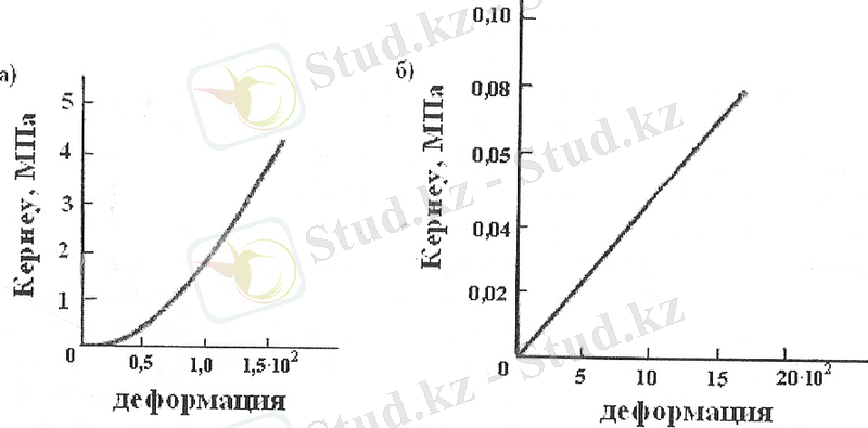Эластинніңтабиғаты - ол гидрофобты және белгілі бір аралыкта қатаң химиялық қосылыстағы амин қышқылдарының тізбегінен тұрады. Созылған кезде сызықтық қасиеті (69, 6-сурет) байқалады. Жұмсақ биологиялык тіндерде элас-тикалык күрылым талшықты (тері, вена, шеміршек) және мембрана-дан (артериялар) тұратын екі түрлі морфологиялық пішінді болады.