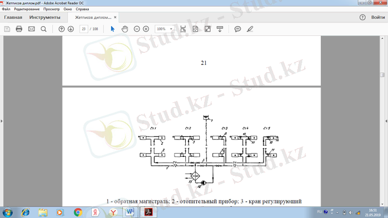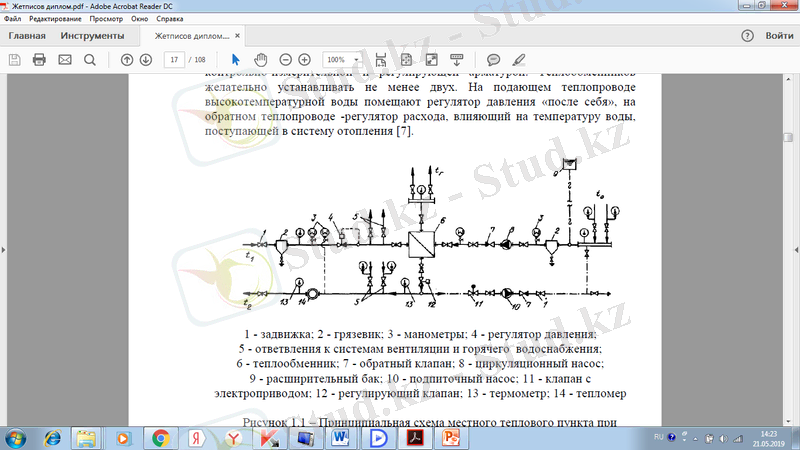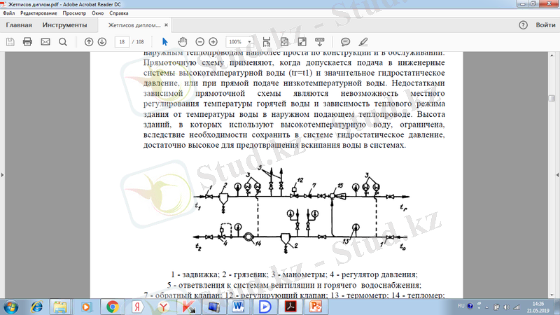 - қазіргі уақыттағы қолданыстағы жылу тарату тармақтарының технологиялық сұлбасын талдау;