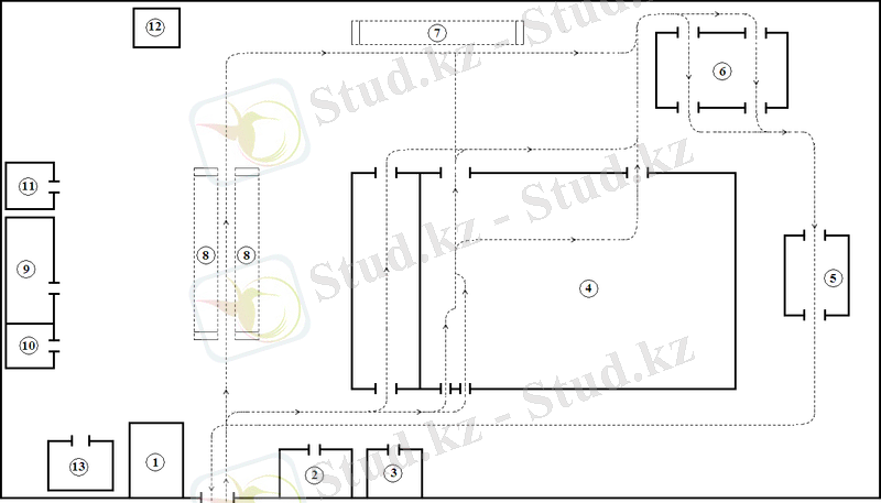 11 - электростанция; 12 - күзет; 13 - жылыту аймағы (котельная) .