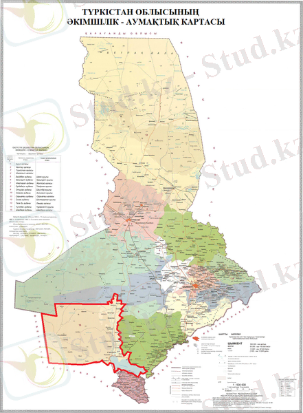 Сурет №1. Түркістан облысының әкімшілік-аумақтық картасы