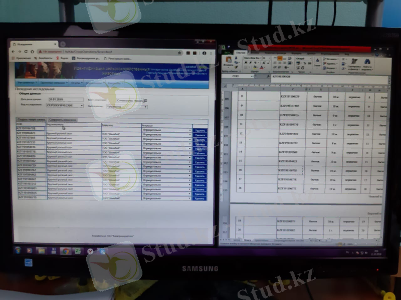 Өндірістік тәжірибеден өту барысында бізді шаруашылықтағы, кеңседегі көптеген жұмыстармен таныстырды. Яғни тек қана жануарларды емдеп немесе емдік шараларды жүргізуді көрсетіп қана қоймай, шаруашылықтағы малдарды тіркеу, олардағы болып жатқан кез-келген өзгерістерді айқындап, белгілеп отыратын бағдарламалармен таныстырды. Қалай жұмыс жасау керек екенін түсіндірді.