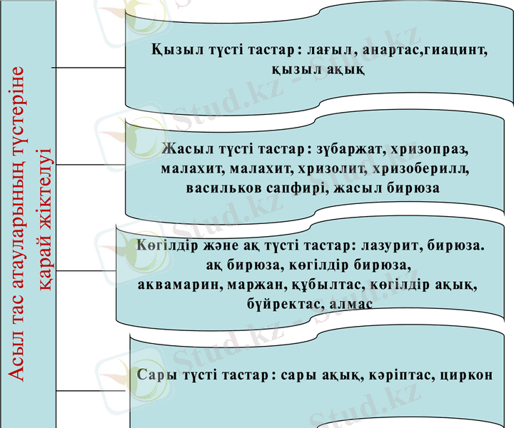 Кесте 2. Асыл тастардың түр-түсіне қарай жіктелімі