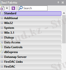 Құрылатын программада пайдалану үшін формада түрлі компоненттер (форма компоненттері) орнатады. Негізгі компонентердің кейбірі Access берілгендер қоры жүйесінде пайдаланылатын элементе панеліне енгізілген түймелер сияқты. Олар Delphi терезесінің компоненттер палитрасына орналастырылған.