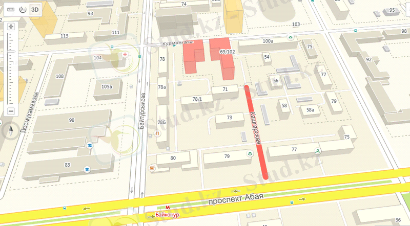 1. 2 сурет - Aбaя - Бaйтұpcынoва- Құpмaнғaзы - Кашкарская шаршы көшелерiндегі тұрғын үй картасы
