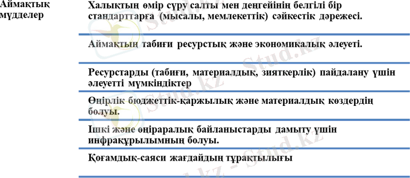 - Қазақстан Республикасы аймақтарының даму ерекшеліктерін сипаттау;