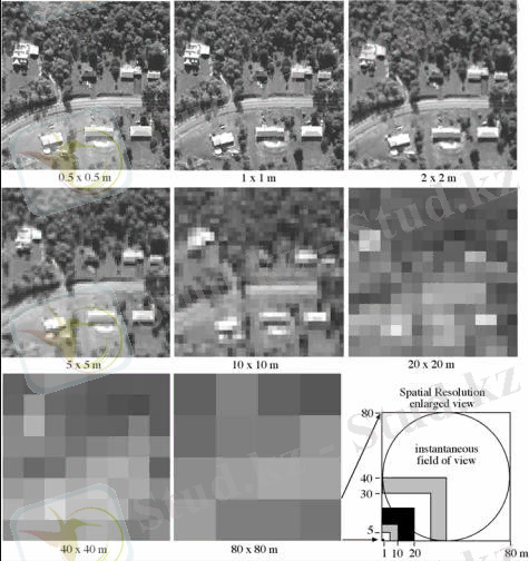кеңістік - жер бетіндегі аумақ, бұл кескіндегі әрбір пикселге (сурет шкаласы) сәйкес келеді;