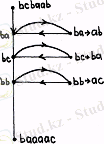 Ba→ab, bc→ba, bb→aс алмастырулары арқылы берілген жалпыланған нормаль алгоритмді қарастырайық (1. 2-сурет) . Бастапқы сөз bcbaab түрінде берілсін. Нәтижеде bc сөзі алынады: