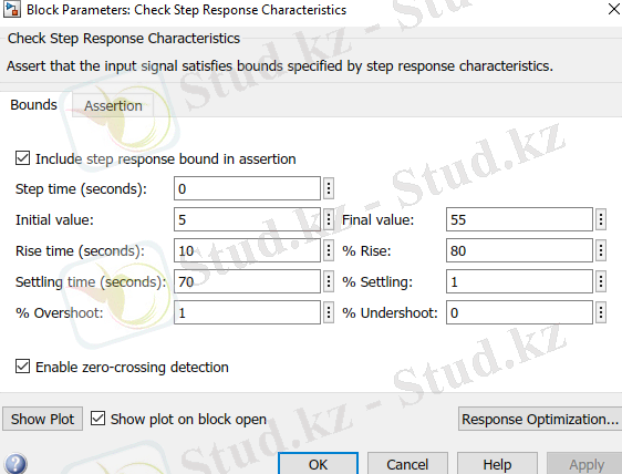 Сурет 2. 4 - Динамикалық параметрлер шектеулерін «Check Step Response Characteristics» сипаттамалары блогы