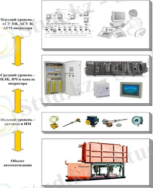 - жоғарғы деңгей - объектіні қашықтан бақылау және басқару үшін орнатылған АЖО операторы бар технологиялық компьютер.
